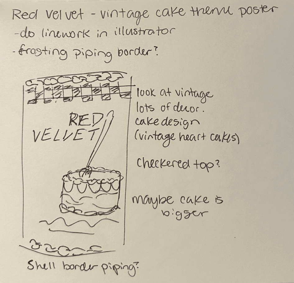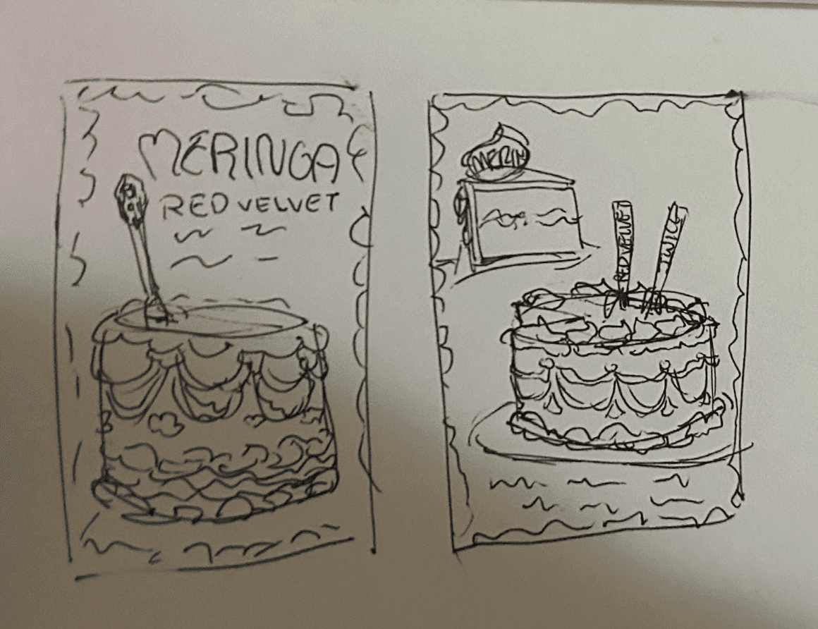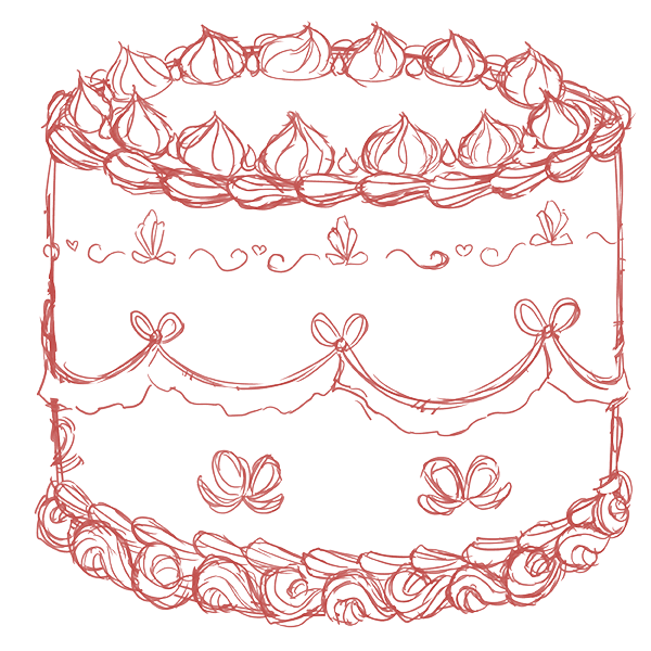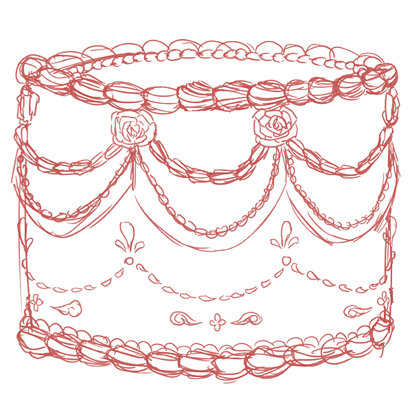 Below are sketches I drew in Clip Studio Paint. I wanted to incorporate the ornate details from the vintage cake trend into my design, so I experimented with different patterns and levels of decoration.
