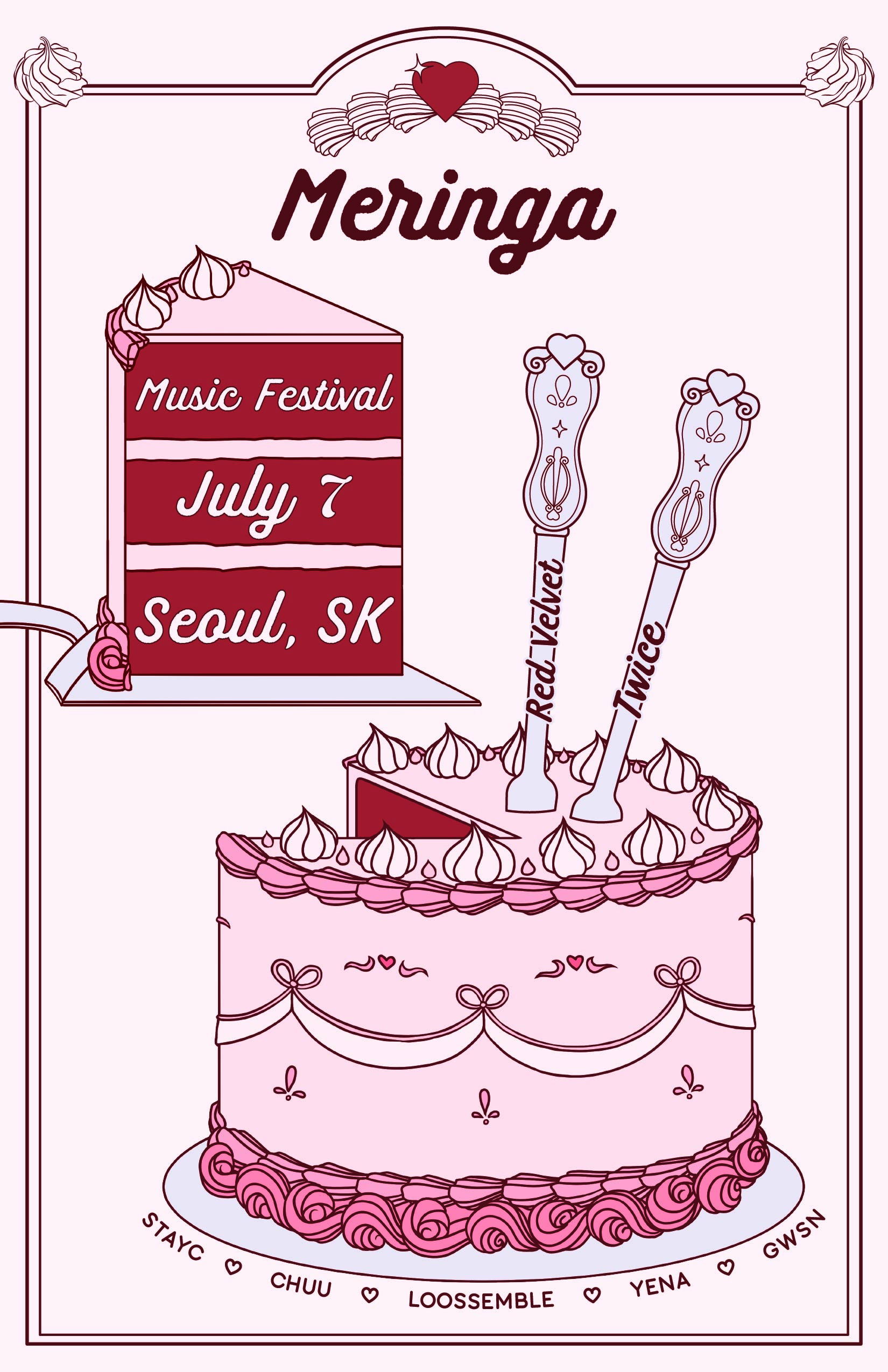 These are some design directions I played with. The poster on the left was an early version of the poster. The poster on the right is almost the same as the final version, but it has a different font on the cake slice.