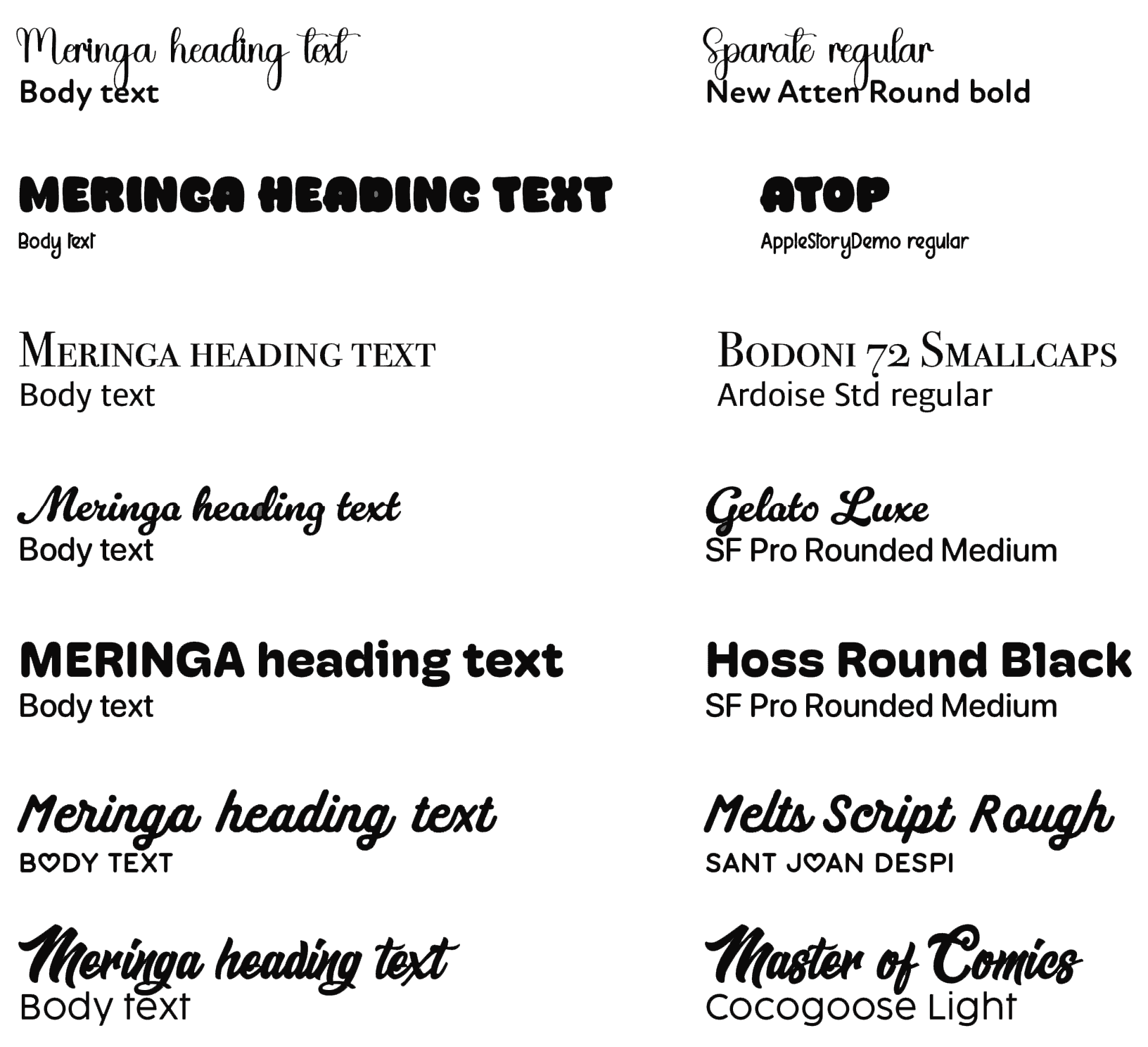 I ended up going with Melts Script Rough for the heading text and Sant Joan Despi for the body text, since they both fit the cake imagery the most.