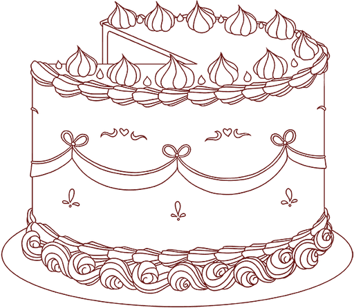 Following peer feedback, I changed the designs and inked them. I kept the top and bottom of the cake detailed, but changed the center of the cake to have a simpler design. I also experimented with making a version of the cake with a slice cut out.