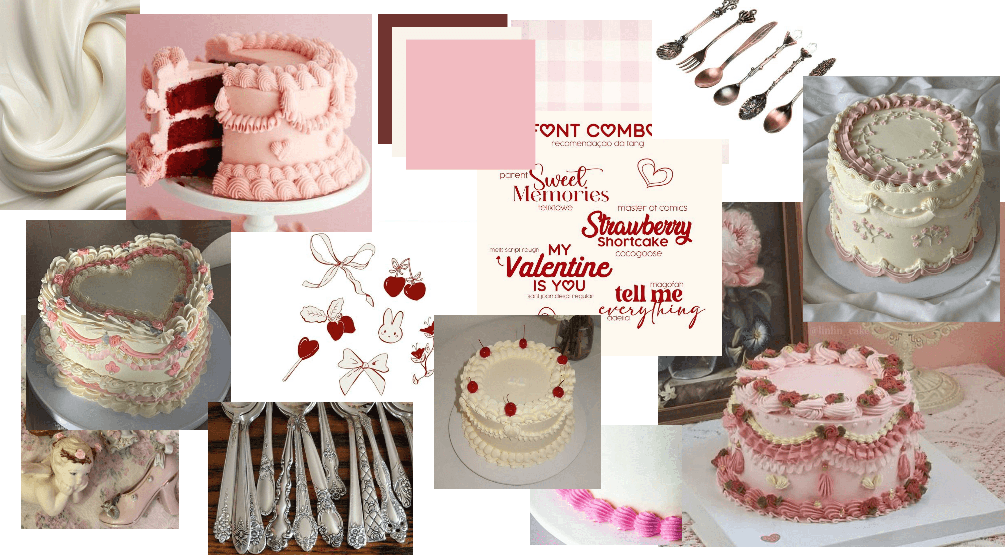 I started by making a mood board, which was heavily inspired by the vintage cake trend that used ornate icing decorations.