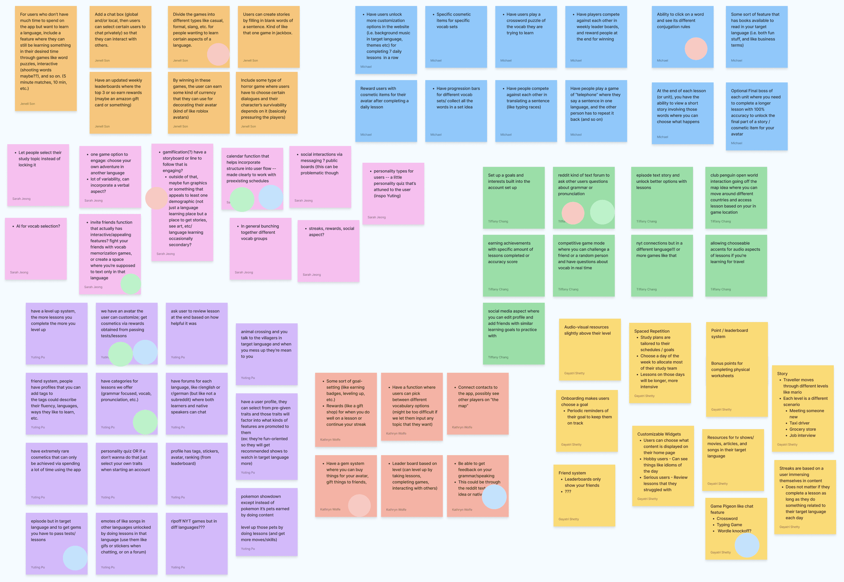 From there, we started ideating on potential features for our website. We wanted to address all patterns we saw in the affinity map.