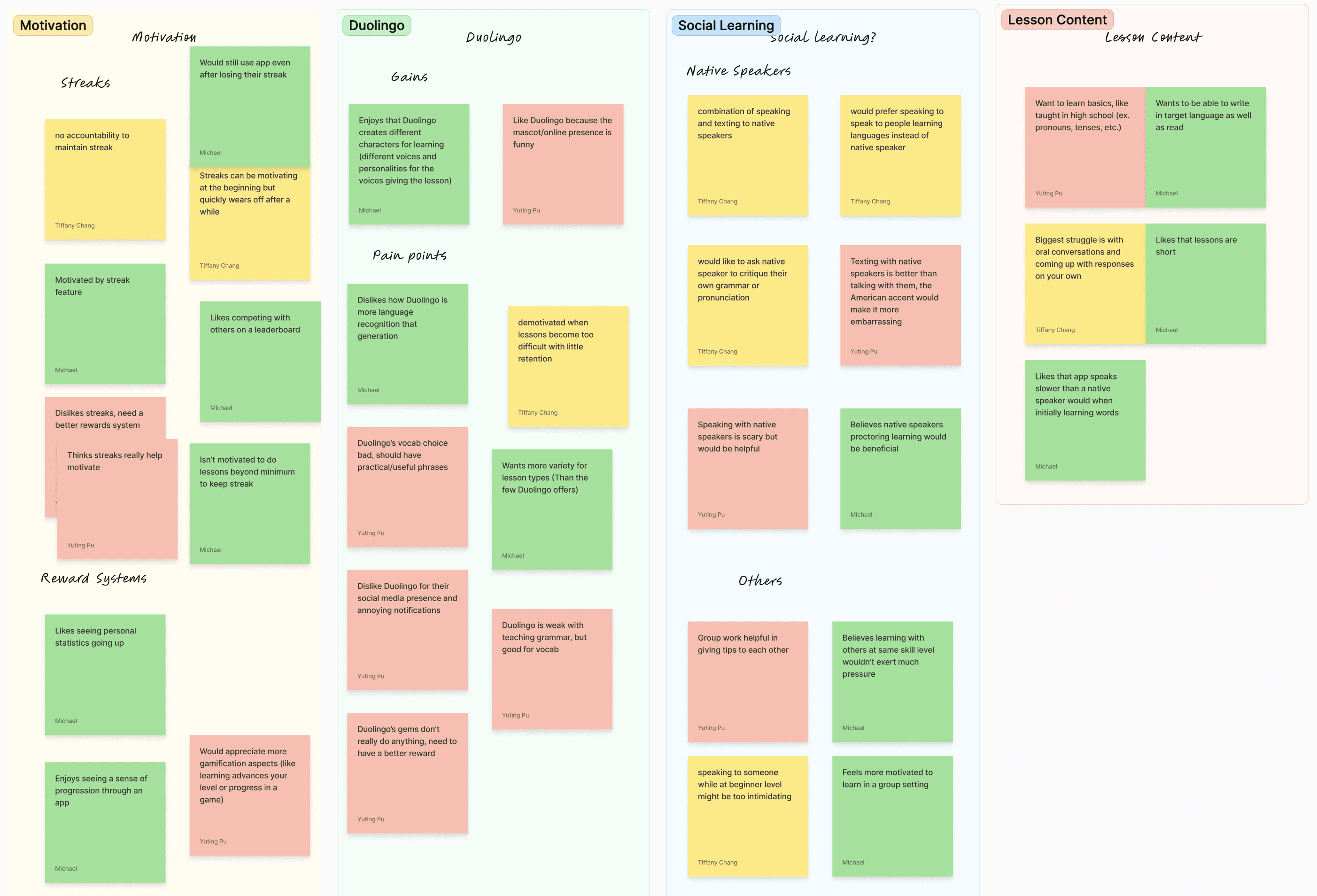 Users of language learning platforms often have hard times staying motivated to keep up with regular lessons. Lesson content also doesn’t fulfill expectations, as users felt they didn’t learn practical lessons about grammar or vocabulary.