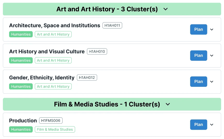 After receiving feedback, we returned the drop-down feature. Users would be able to look at cluster information via the drop-down, but not be able to select courses in the drop-down (unlike before). Cluster course selection would only be accessible by clicking the Plan button.